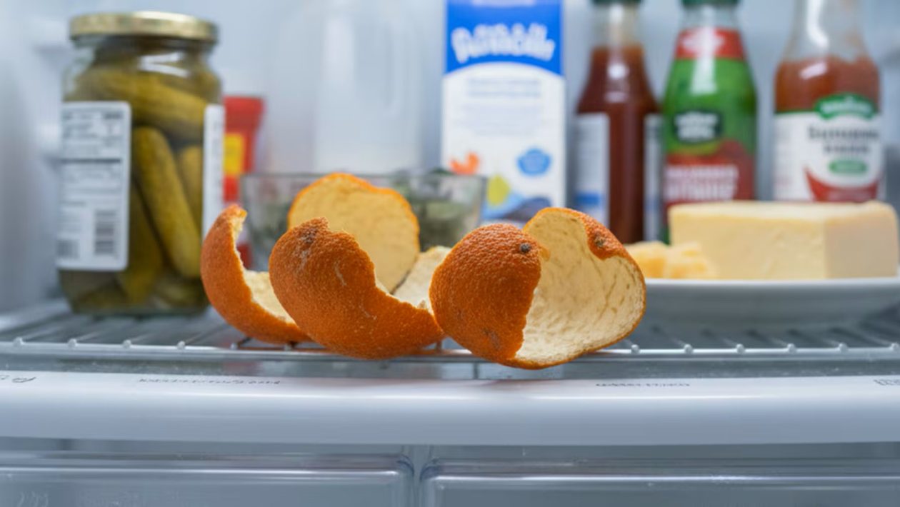 Waarom wordt aanbevolen om sinaasappelschillen in de koelkast te leggen en waarvoor dienen ze?